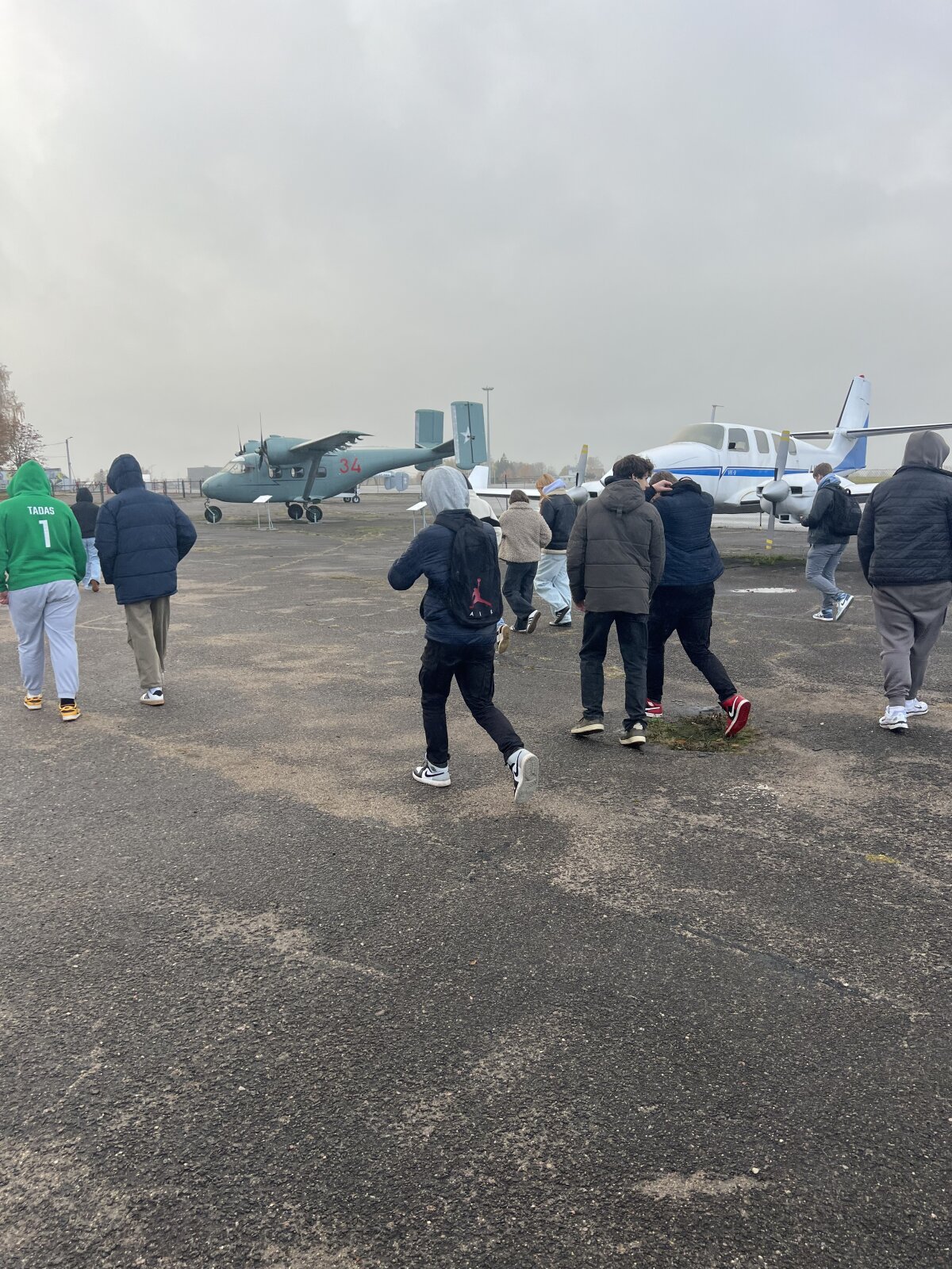 Kupini emocijų apie krepšinį skubėjome į Aviacijos muziejų, kur apsilankėme skrydžio pažinimo centre. Ten mokiniai (ir ne tik jie) galėjo save išbandyti virtualiame lėktuvo pilotavime, giroskope (skirtame tiems, kurie norėjo išbandyti ,,skrydį" 360 laipsnių kampu, taip pat ,,paukščio skrydį).
