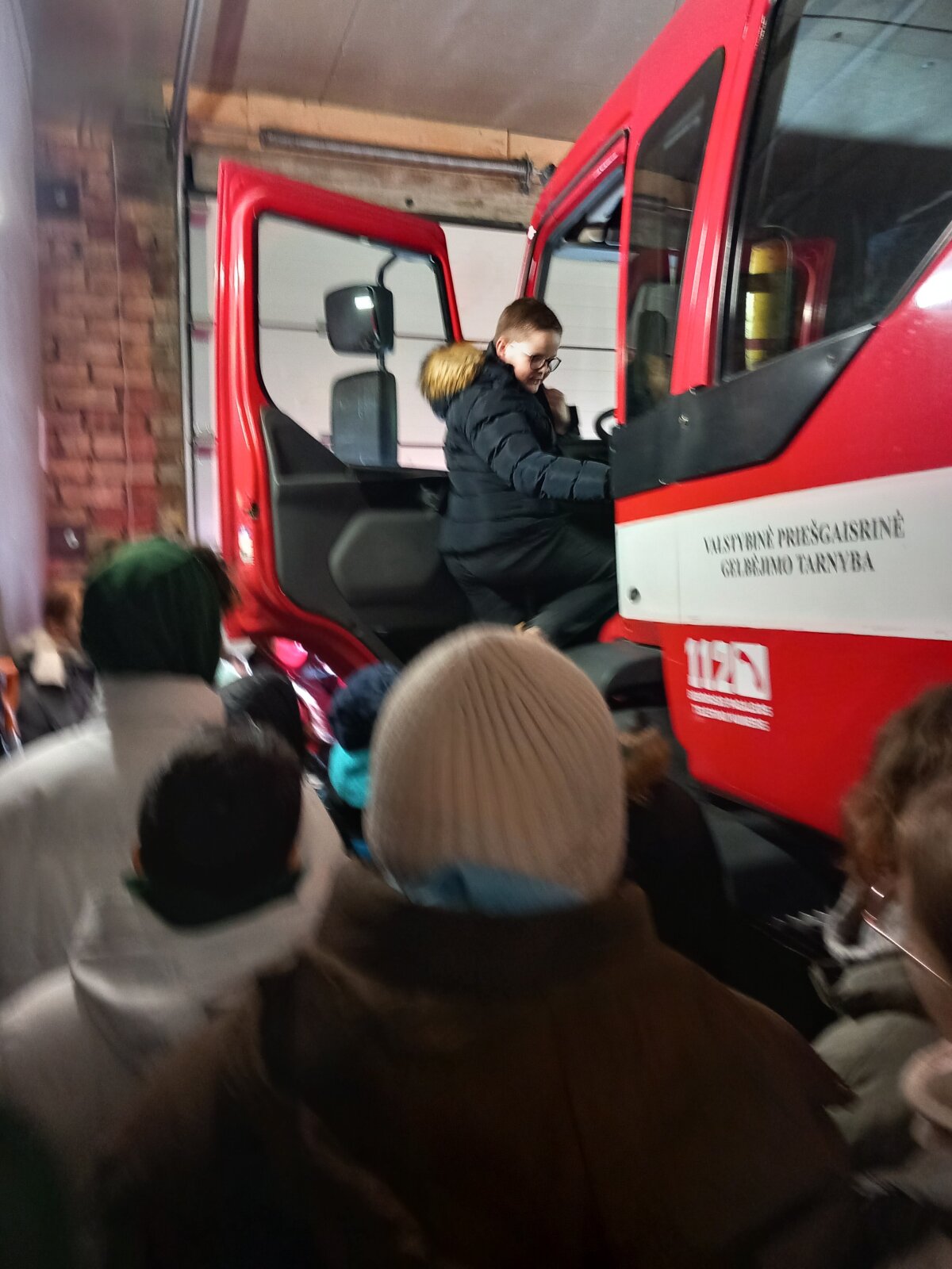 Sausio 19 d. gimnazijos 5 klasės mokiniams gyvenimo įgūdžių pamoka vyko kitaip – mokiniai lankėsi Giedraičių gaisrinėje. Čia jie susipažino su gaisrininko darbo specifika, apžiūrėjo priemones naudojamas gaisrams gesinti, pasimatavo kvėpavimo aparatą. Sužinojo, kad gaisrininkai ne tik gesina gaisrus, bet ir gelbsti skęstančius, įlūžus ledui, traukia žmones iš automobilių įvykus avarijai ir atlieka daug kitų gelbėjimo darbų. Moksleiviai labai dėkingi gaisrininkams Regimantui ir Gintui Gobiams už įdomų pasakojimą ir įtraukiančią ekskursiją.