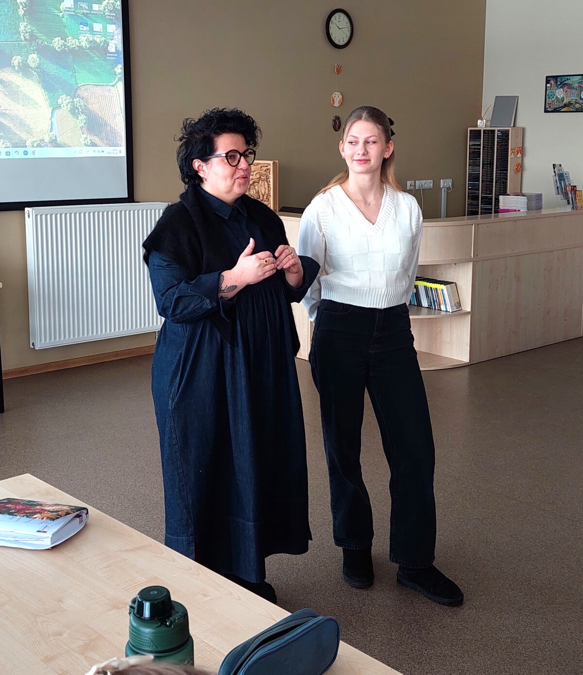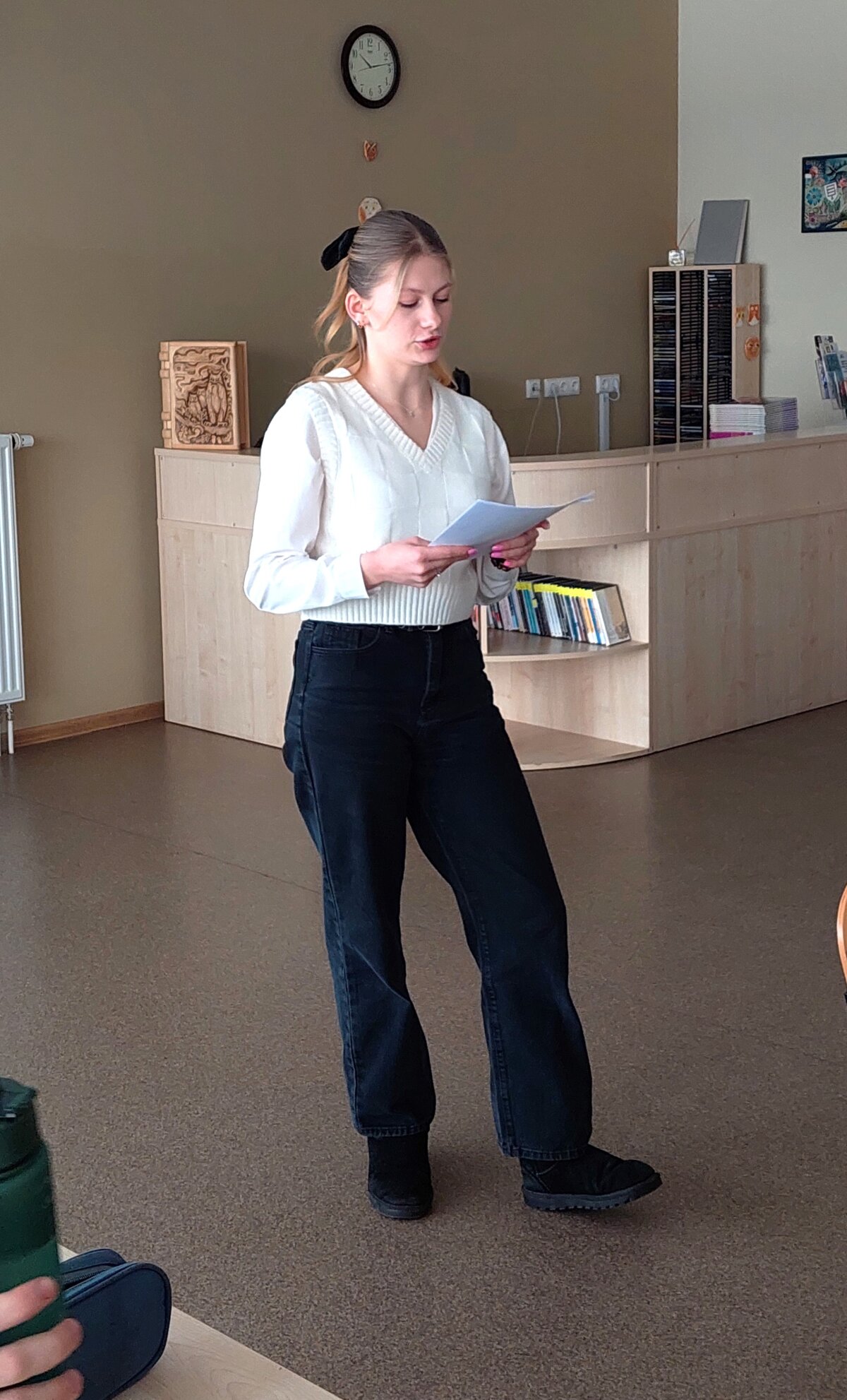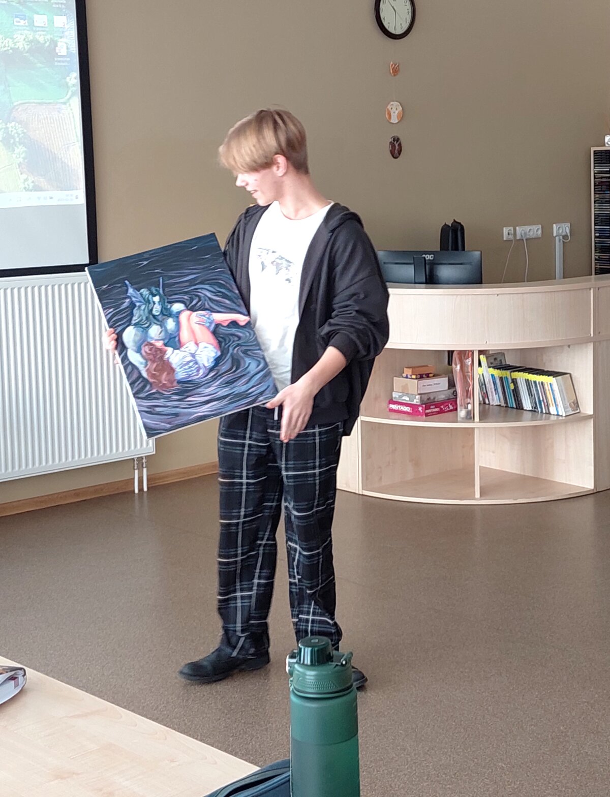 Šiandien Molėtų gimnazijos bibliotekoje III-IV klasių mokiniams įvyko paskutinis TŪM projekto kūrybinio rašymo dirbtuvių užsiėmimas, kurio metu mokiniai skaitė savo sukurtas istorijas. Buvo labai gera klausytis įvairių stilių, kartais linksmų, kartais skaudžių pasakojimų, kurie sužavėjo atvirumu ir nuoširdumu. Labai AČIŪ žurnalistei, laidų vedėjai Viktorijai Urbonaitei, kuri padėjo mokiniams atrasti savyje kūrybos kibirkštėlę ir patikėti, jog visi galime kurti, reikia tik atsikratyti „nuodingo“ mito – „Tai ne man, tai ne mano galimybė...“. Ir, žinoma, ačiū Danielei, Ugnei, Mantui, Arminui ir Medai, kurie išdrįso išeiti iš komforto zonos – žengė vieni mažesnį, o kiti ir labai didelį žingsnį.