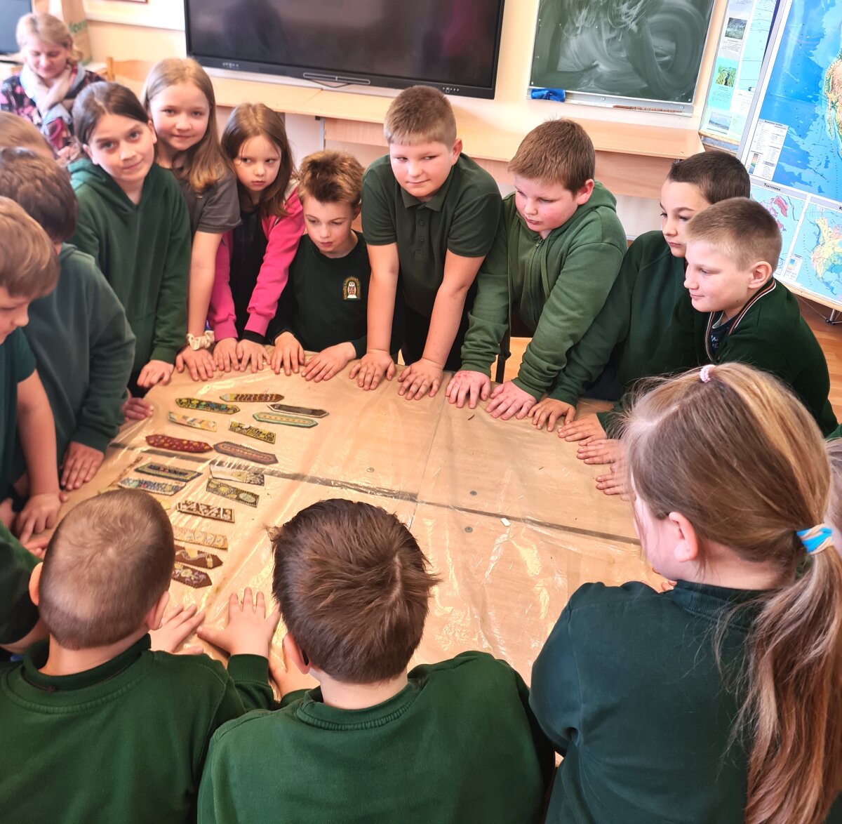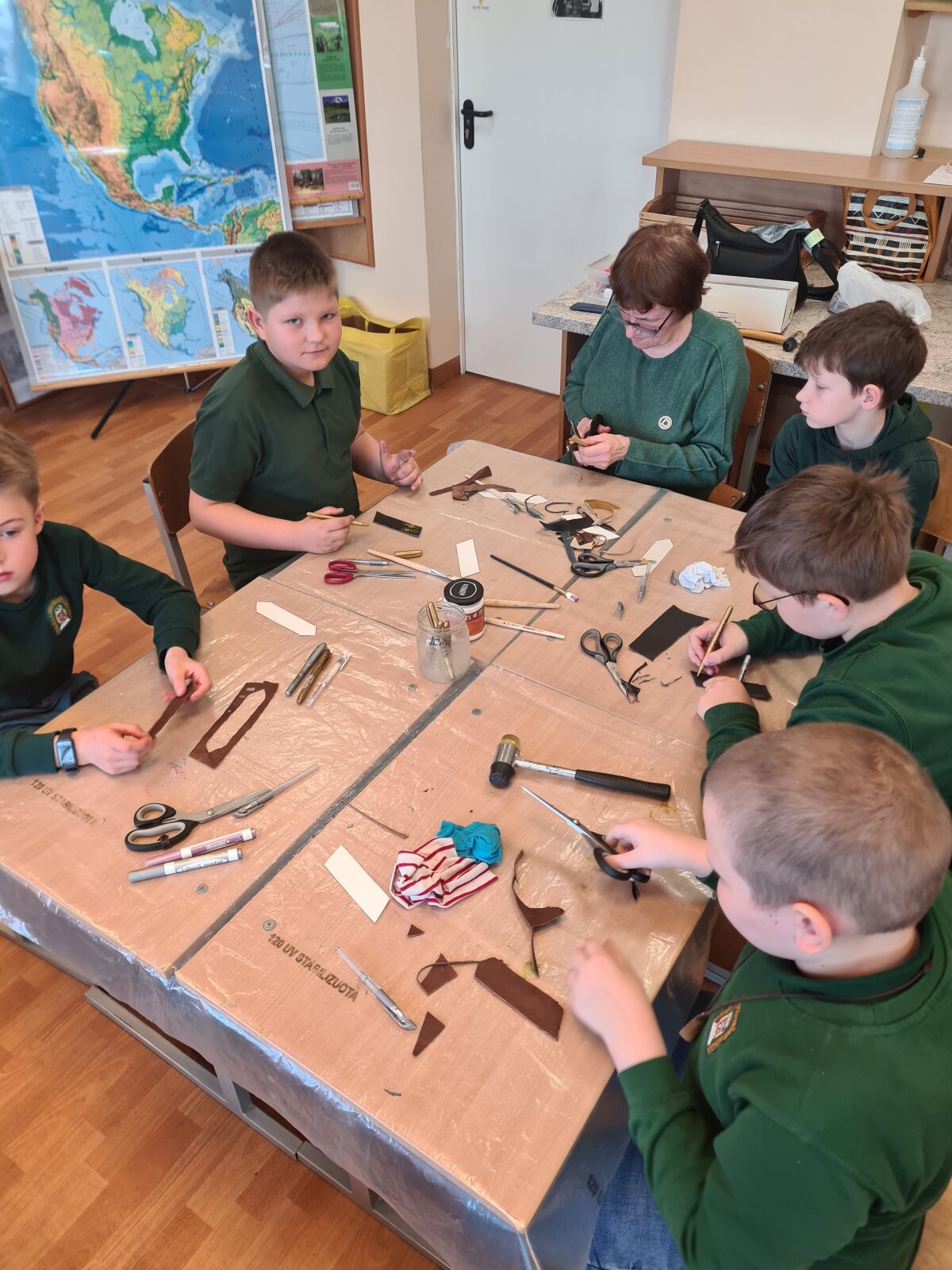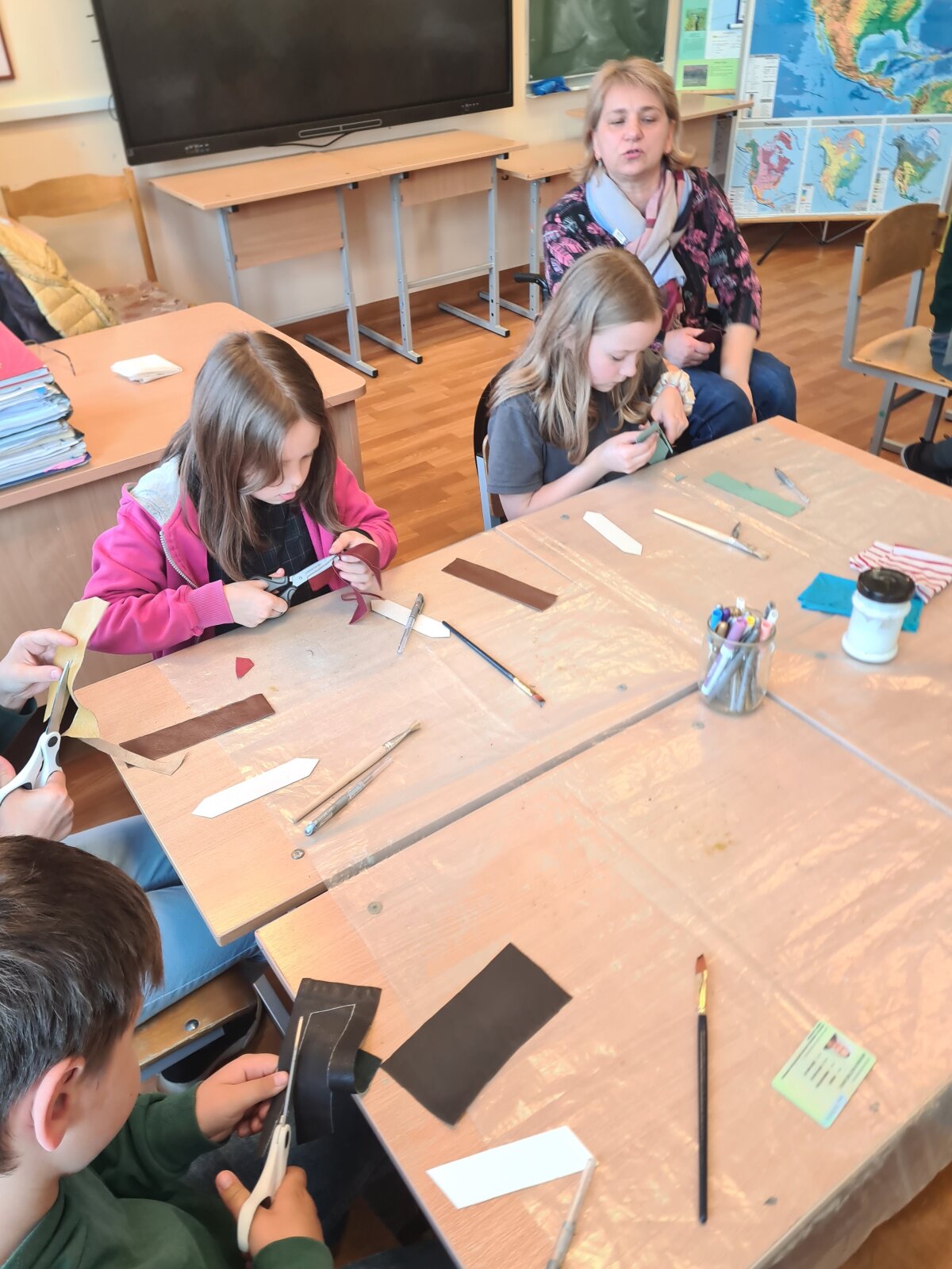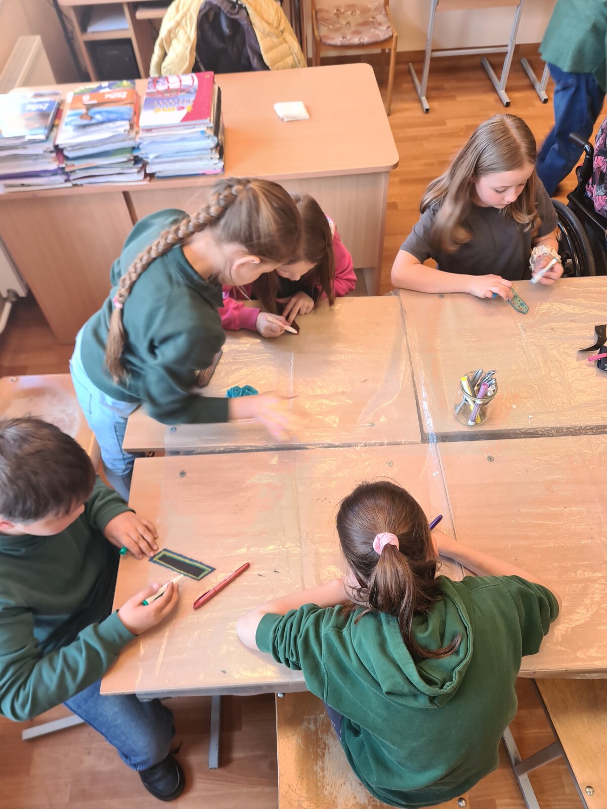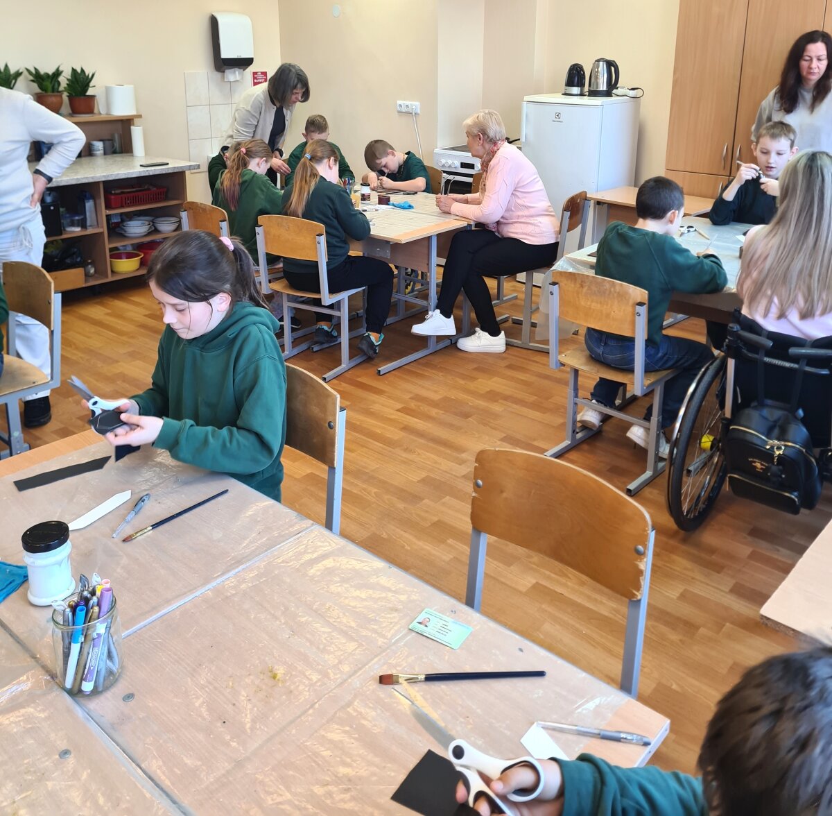 Balandžio 15 dieną, Giedraičių Antano Jaroševičiais gimnazijoje 1-4 klasėse svečiavosi programos „Tūkstantmečio mokykla“ partneriai – Molėtų krašto žmonių su negalia sąjunga. Viešnios papasakojo apie žmones su negalia: kaip jie  gyvena, dirba, kokius turi pomėgius ir kaip save realizuoja. Vėliau, amatų dirbtuvėse, mokė pradinukus pasigaminti odinius knygų skirtukus ir juos dekoruoti. Artėja pavasario atostogų metas, todėl šis autorinis darbas pravers kiekvienam skaitant knygeles Velykų atostogų metu.