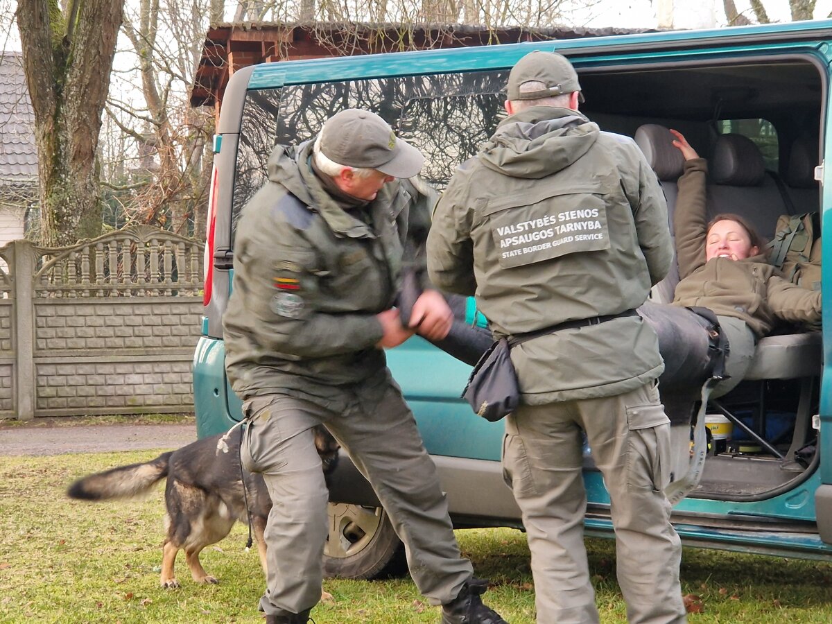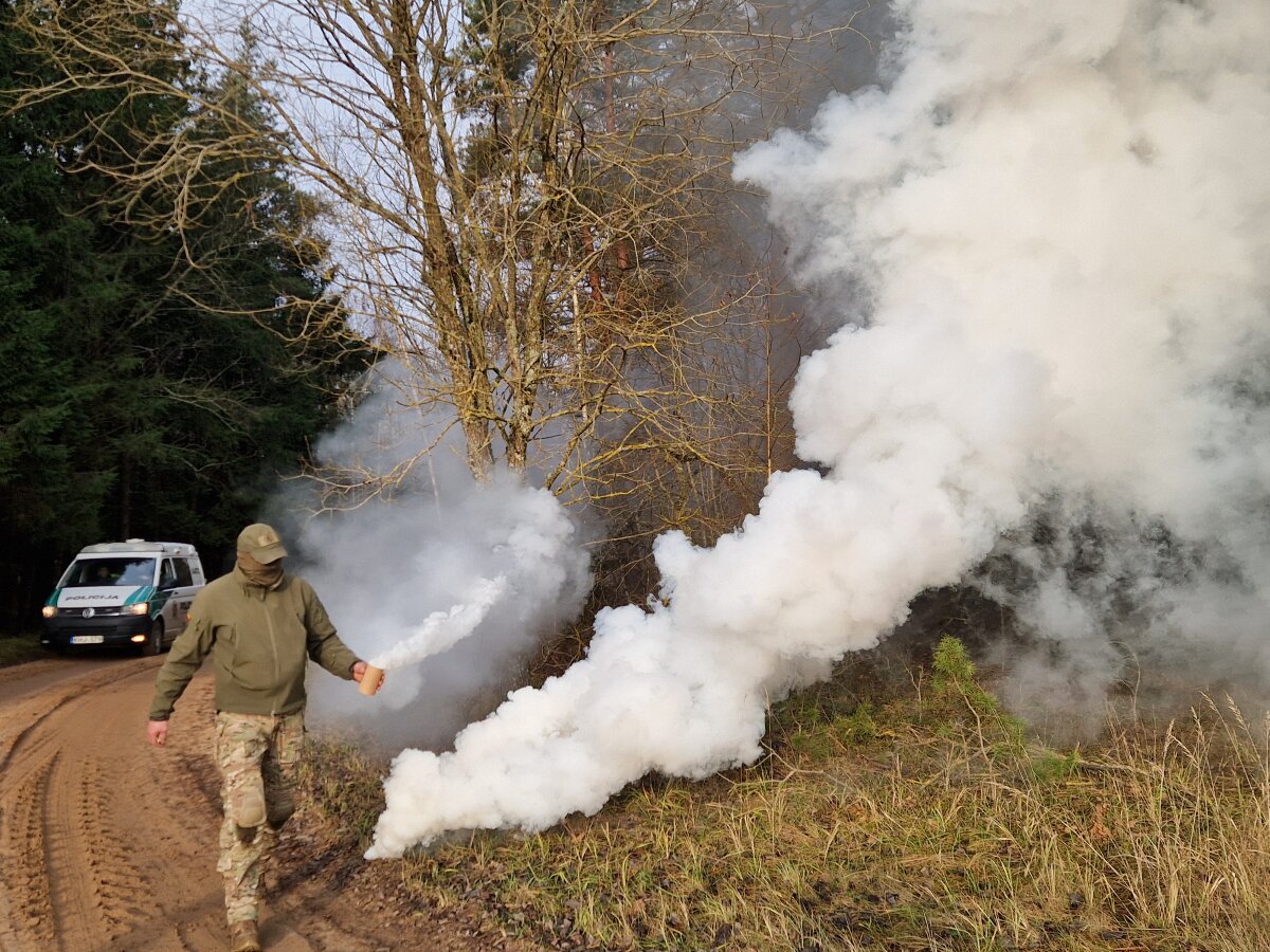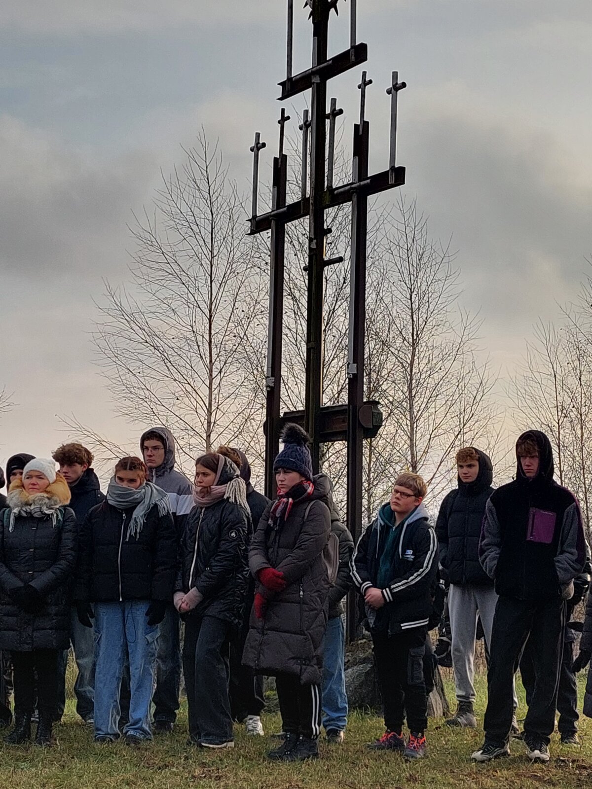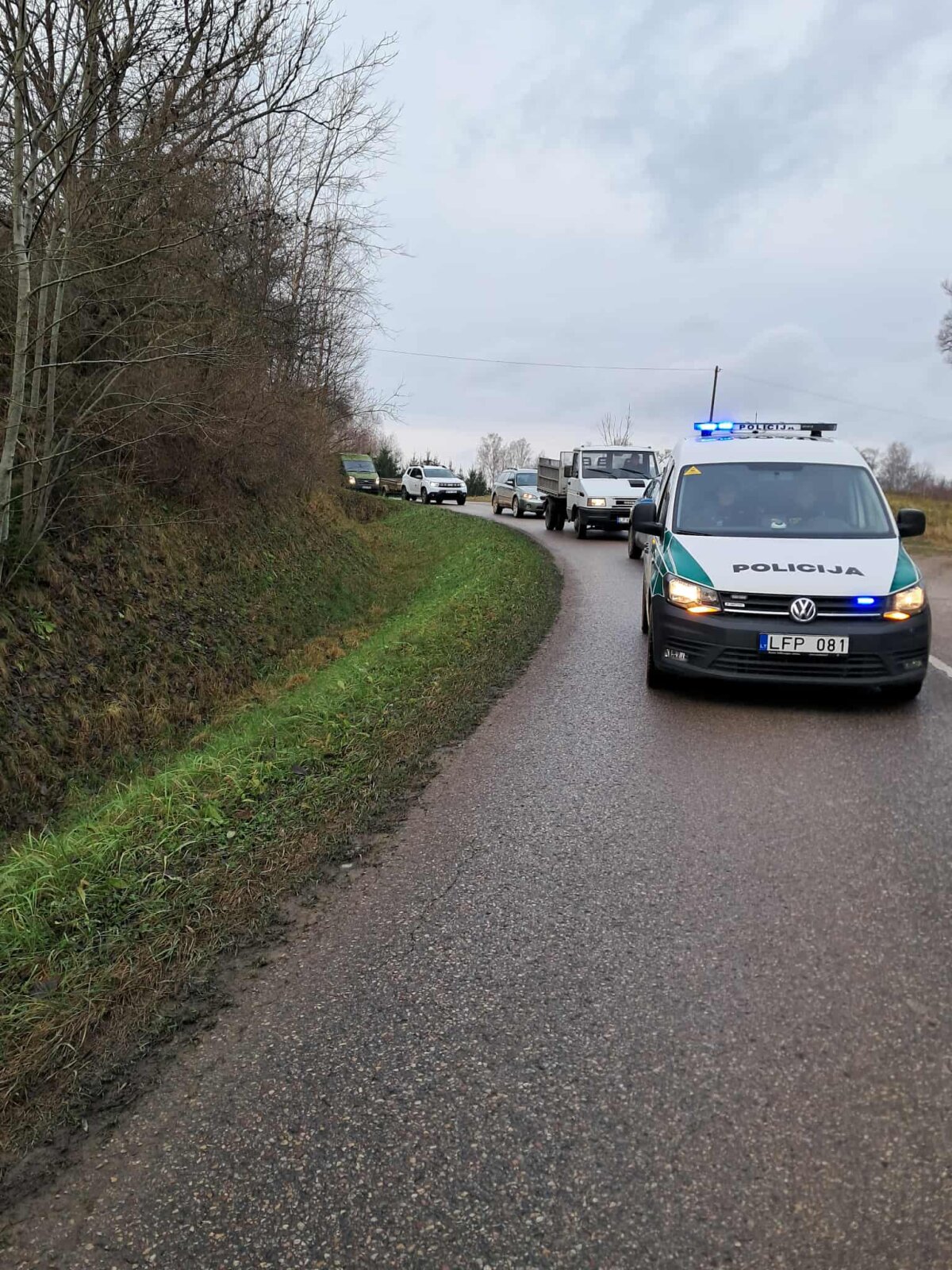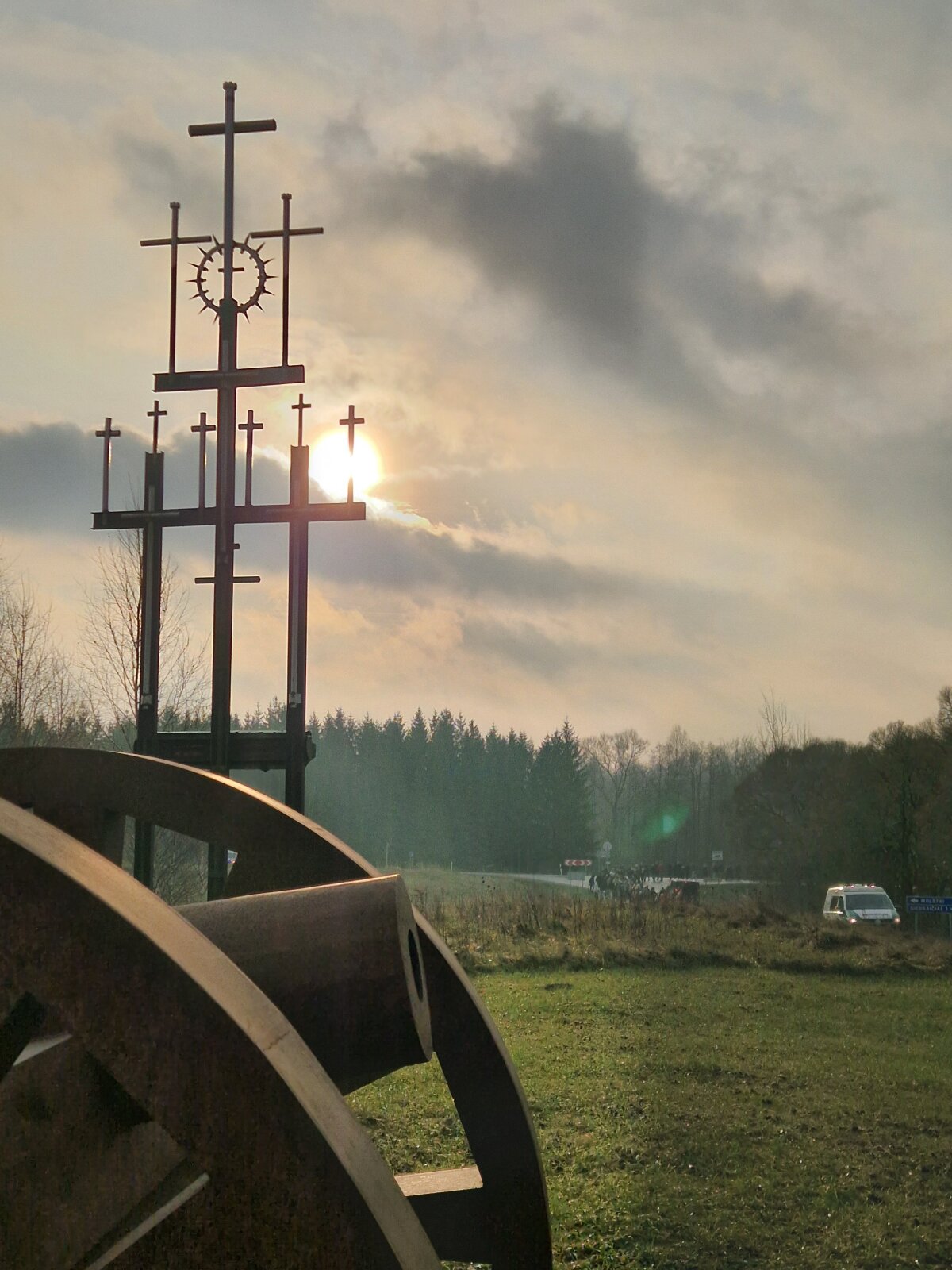 Vėliau, saugiai lydimi policijos ekipažų, žygiavome į pirmojo mūšio vietą prie Bekupės. Pakeliui sustojome ir padėjome gėlių prie nepriklausomybės kovų simbolio – stilizuoto pabūklo, skirto Giedraičių mūšio šimtmečiui paminėti.