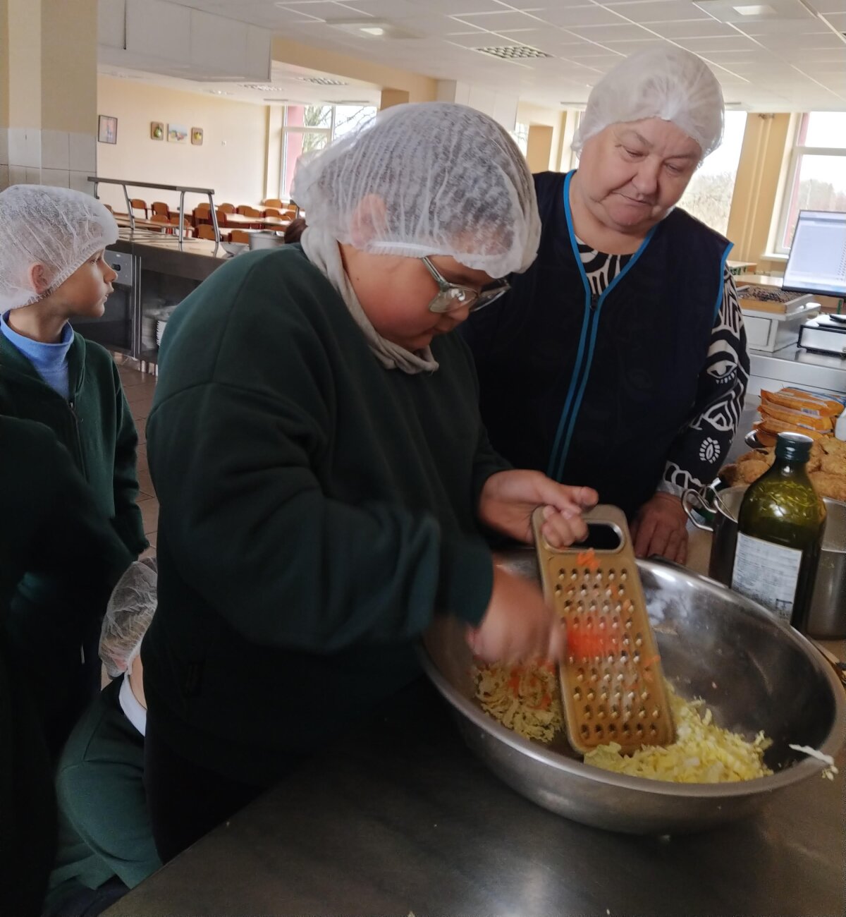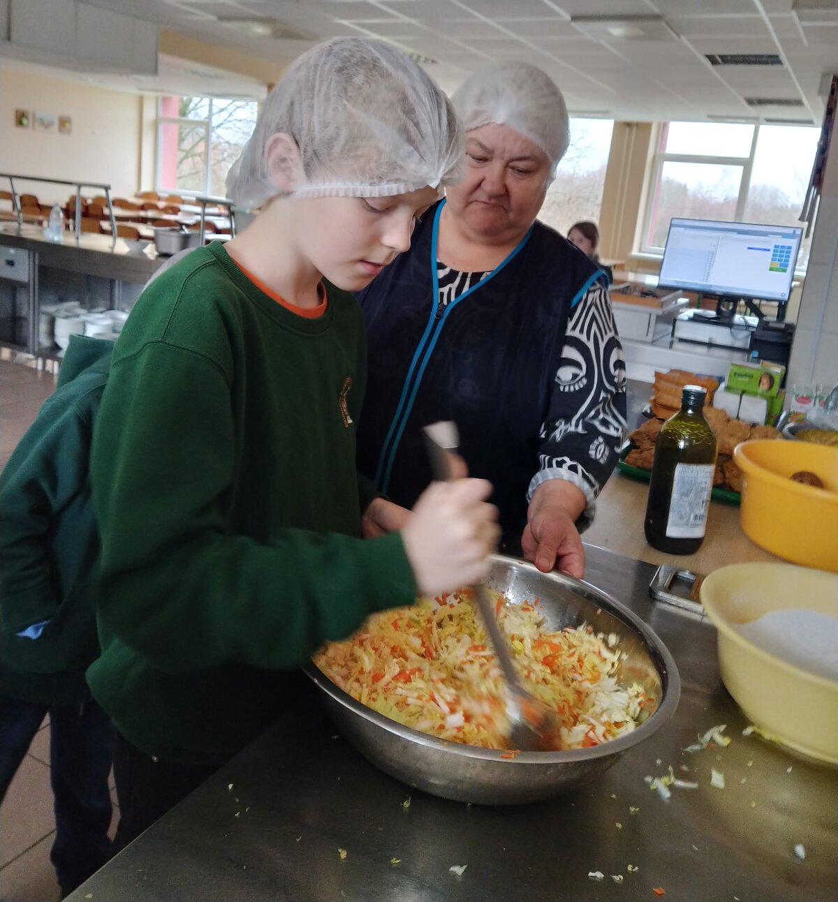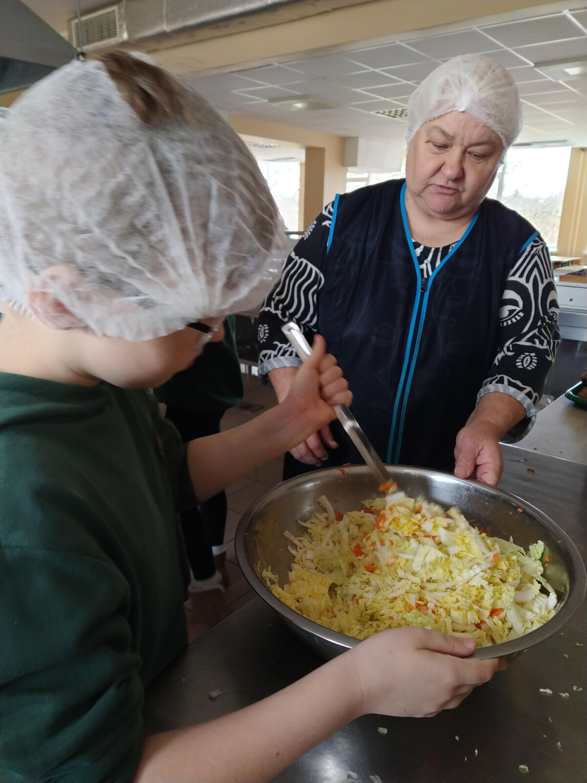Trečiokai apsilankė gimnazijos valgykloje, kur kalbėjosi su virėjomis, domėjosi kaip vyksta mokinių maitinimo darbai, uždavė daug klausimų bei susipažino su vaisiais ir daržovėmis iš arčiau gamindami sveikuoliškas salotas. Vieni skuto daržoves, kiti pjaustė ir tarkavo, dar kiti maišė, o pagaminę su malonumu jas suvalgė. Pasisotinę nutarė, kad reikia valgyti daugiau šviežių vaisių ir daržovių, nes naudinga.
