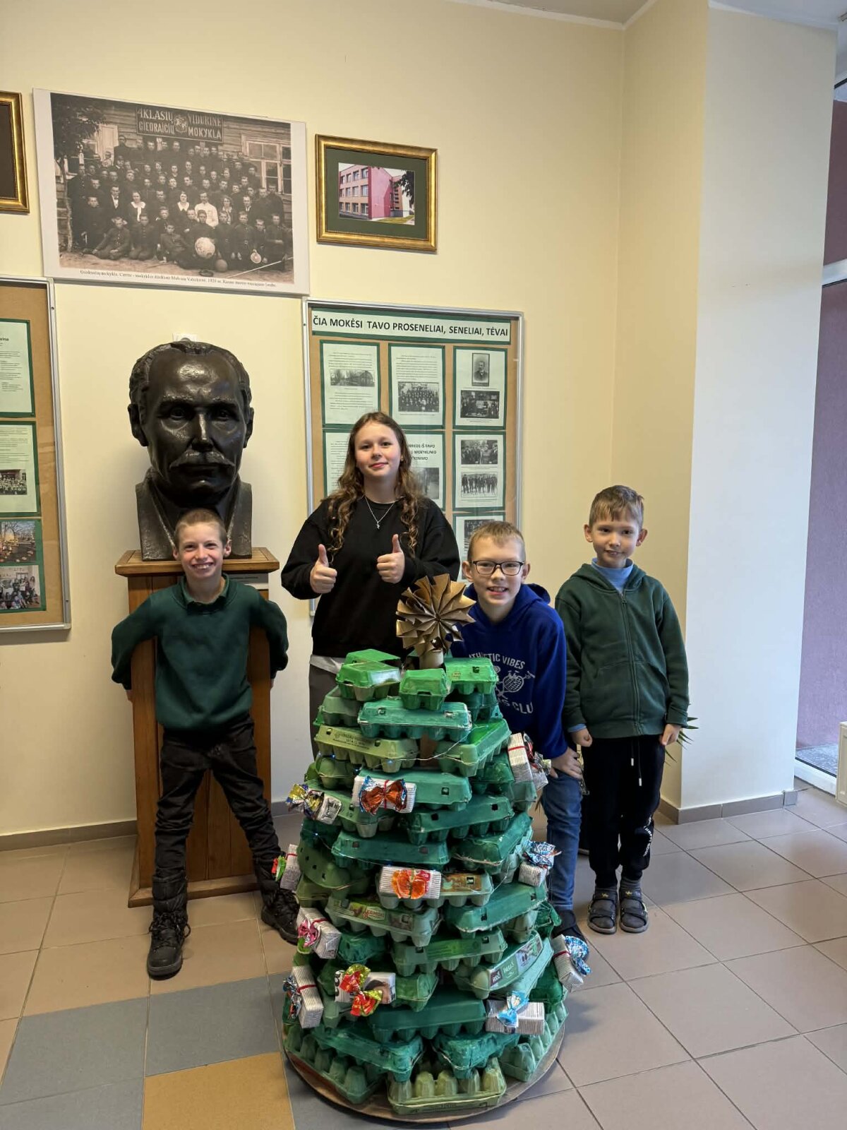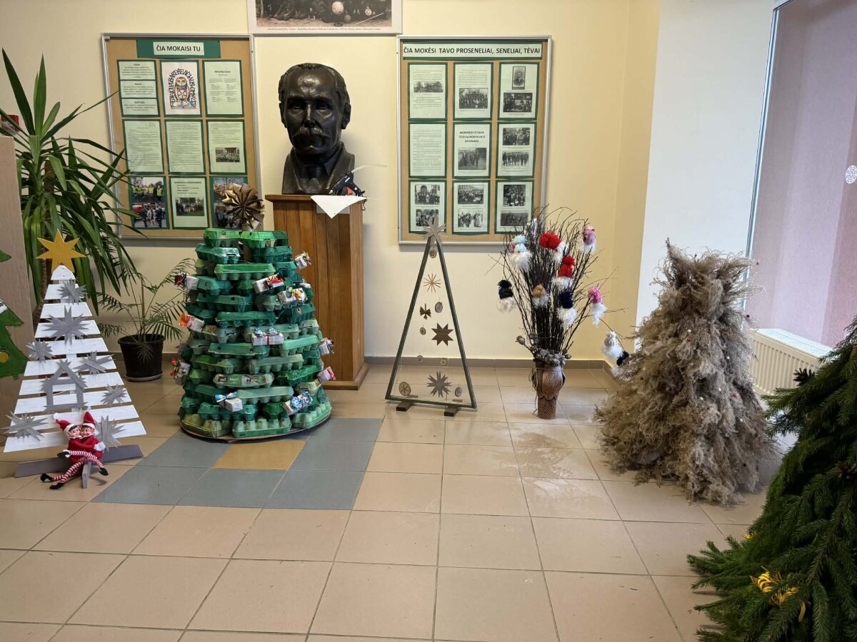 Gruodžio 12 d. gimnazijoje vyko netradicinio ugdymo diena „Kuriame, puošiame, švenčiame!“ Visų klasių mokiniai iš tvarių, gamtinių medžiagų pagamino eglutes (arba kitas dekoracijas), kurios papuošė mokyklos erdves. Dėkojame UAB „Alobera mediena“ už padovanotą medieną eglučių karkasams.