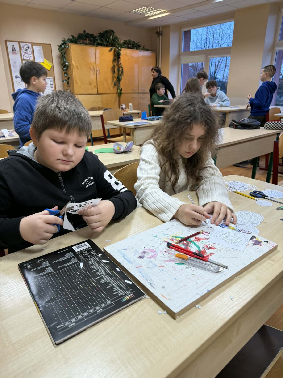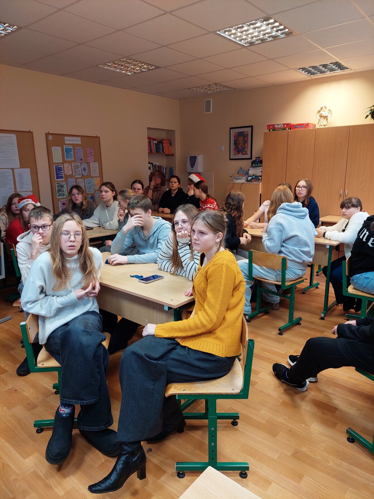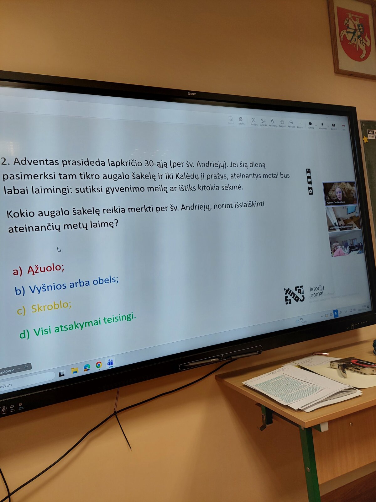 Vėliau 5-8 klasių mokiniai susirungė Lietuvos nacionalinio muziejaus filialo „Istorijos namai“ parengtame nuotoliniame protmūšyje „Kalendorinės šventės“, kurį vedė edukatorė Audronė Daraškevičienė. Viktorinos metu mokiniai ne tik pasitikrino žinias, bet ir sužinojo naujų dalykų apie naujo metų rato pradžią žyminčios šventės papročius. Po protų kovų mokiniai smagiai ieškojo „lobių“ įvairiose mokyklos erdvėse.